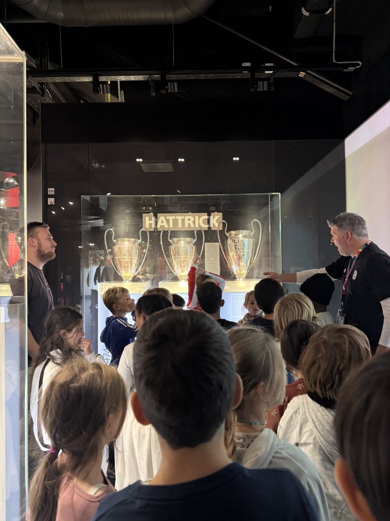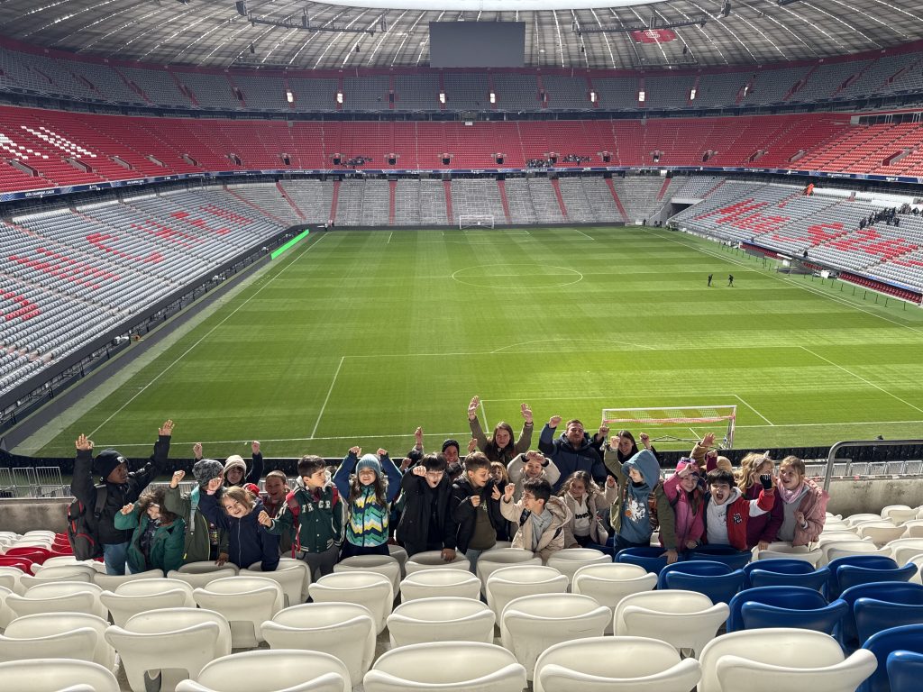 Der anschließende Blick von den Rängen auf das riesige Spielfeld war für viele ein unvergesslicher Moment – begleitet von spannenden Informationen, der Möglichkeit, unzählige Fragen zu stellen und einer Fangesangs – Probe der Kinder. Danach führte der Weg ins FC Bayern Museum. Dort sorgten besonders die riesigen und vielen Pokale für Staunen. Zum Abschluss konnten sich die SchülerInnen im „Berni-Haus“ austoben. Ein rundum gelungener Ausflug, der noch lange in Erinnerung bleiben wird.