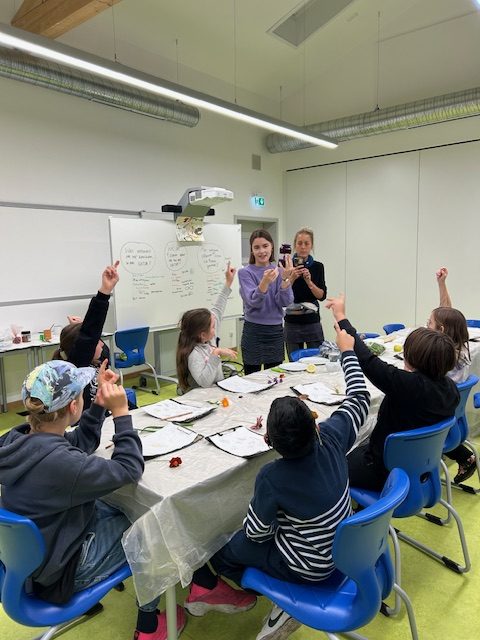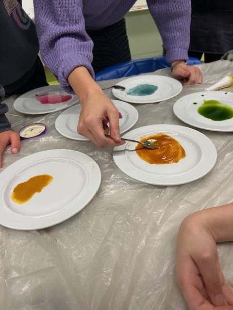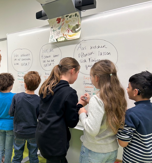 Besonderer Höhepunkt war die Herstellung natürlicher Farben aus Rotkohl, Spinat und Kurkuma. Mit diesen Farben gestalteten die Kinder beeindruckende Bilder auf Leinwänden – echte Naturkunstwerke!