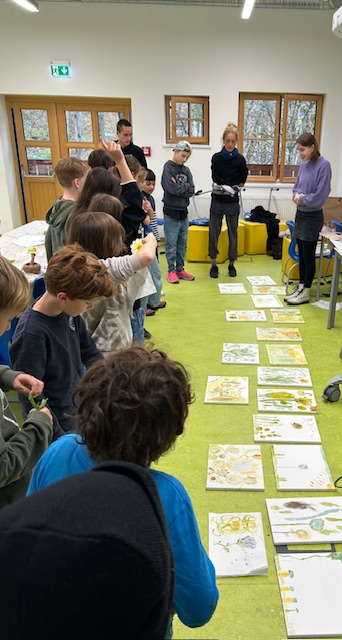 Neben der kreativen Arbeit stattete die 4a auch den Kunekune-Schweinen einen Besuch ab und durfte das lebendige Klassenzimmer mit Stabheuschrecken, einer Python und einer Bartagame erkunden – spannende Begegnungen mit lebendiger Natur!