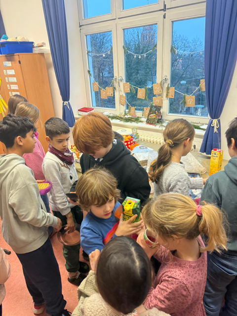 Das Buffet bot eine große Vielfalt: warmer Kinderpunsch, selbstgemachte weihnachtliche Köstlichkeiten, frische Rohkost und saftiges Obst. Für jeden Geschmack war etwas dabei. Gemeinsam wurde geschlemmt, gelacht, Weihnachtslieder gesungen und erzählt. Die Kinder nutzten die Gelegenheit, sich auszutauschen und die Patenbeziehungen weiter zu stärken.