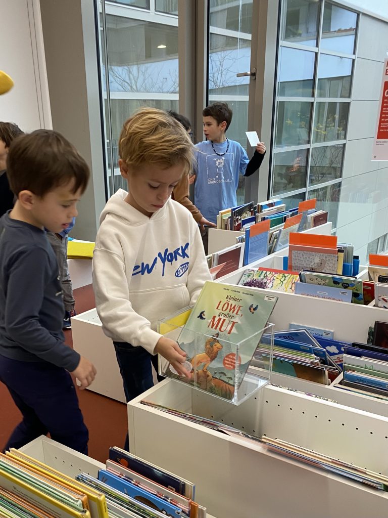 Dort wartete eine spannende Lesegeschichte über einen Löwen, der nicht schreiben konnte, auf sie. Mit tatkräftiger Unterstützung der Schülerinnen und Schüler las die Bibliothekarin das gleichnamige Buch vor. Nach dem Zuhören durften die Kinder selbst auf Entdeckungstour gehen. In kleinen Gruppen erforschten sie die Bibliothek.