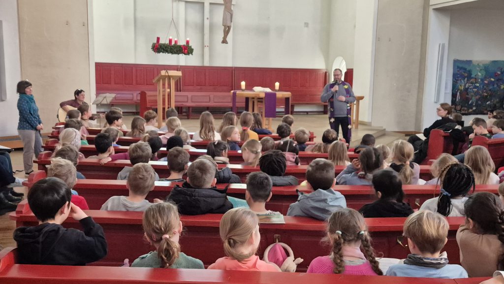 Dieses Mal wurde er von Diakon Oliver Skerlec gehalten. Kinder der dritten und vierten Klassen erzählten uns, dass Sterne den Weg weisen können, dass sie aber auch gerade in der dunklen Jahreszeit Licht und Freude bringen.