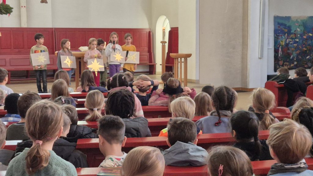 In der „Konferenz der Sterne“ durften wir einem Vortrag lauschen, in dem der kleinste Stern schließlich die zündende Idee hatte: Nicht nur der schnellste, größte oder hellste Stern darf zum Jesuskind eilen. Nein, sie gehen alle zusammen. Noch mit den Weihnachtsliedern im Ohr konnten die Ferien beginnen!